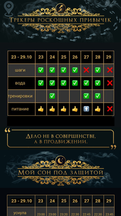 У нас есть фитнес-тренер, коуч, ежедневные зарядки, трекер воды, сбалансированное меню с твиксами и баунти, мы учимся контролировать эмоции, которые вызывают переедание и диверсификацию целей. Со мной ещё сотня единомышленниц. Нас гордо называют ведьмочками и разделили на ковены, а общаемся мы в чате под названием "Гостеприимная таверна".